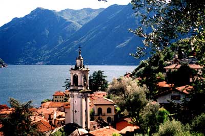 Menaggio, against the mountains, is a lively resort with a lakeside promenade. Menaggio is popular with outdoor enthusiasts for walking or hiking, swimming, windsurfing, and rock climbing.